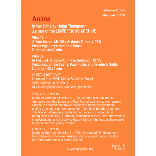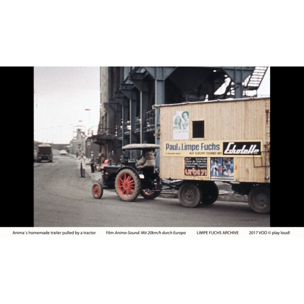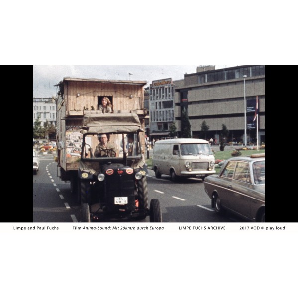 Made for German television in 1972, this rare film documents Anima-Sound (duo Limpe and Paul Fuchs) as they caravan across Europe in a homemade trailer pulled by a tractor, intermittently setting up outdoor performances for (often bewildered) bystanders.