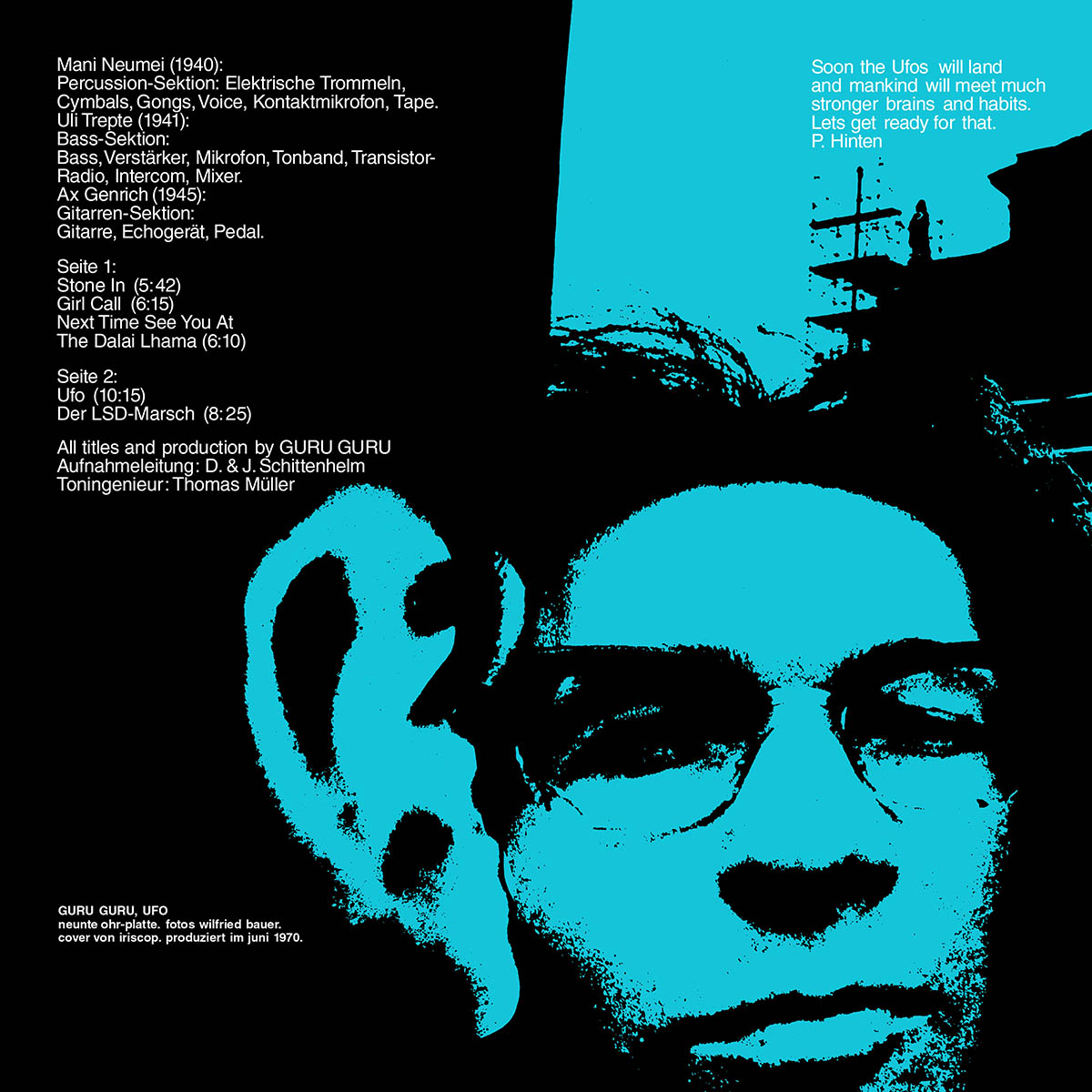 500 copy limited edition of the original album from 1970: 250 black vinyl and 250 turquoise colored vinyl.