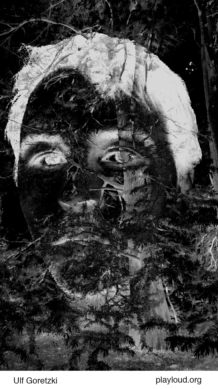 "On one side a gravity free display by Floating Di Morel, by moonlight, shifting sound and image fluttering like moths, on the reverse ULF creates a synthetic forest, which forms a maze for disembodied voices to wander, floating above a mysterious void, the sound of an eclipse, a dance seen in negative light, the traces of Donna Winter."