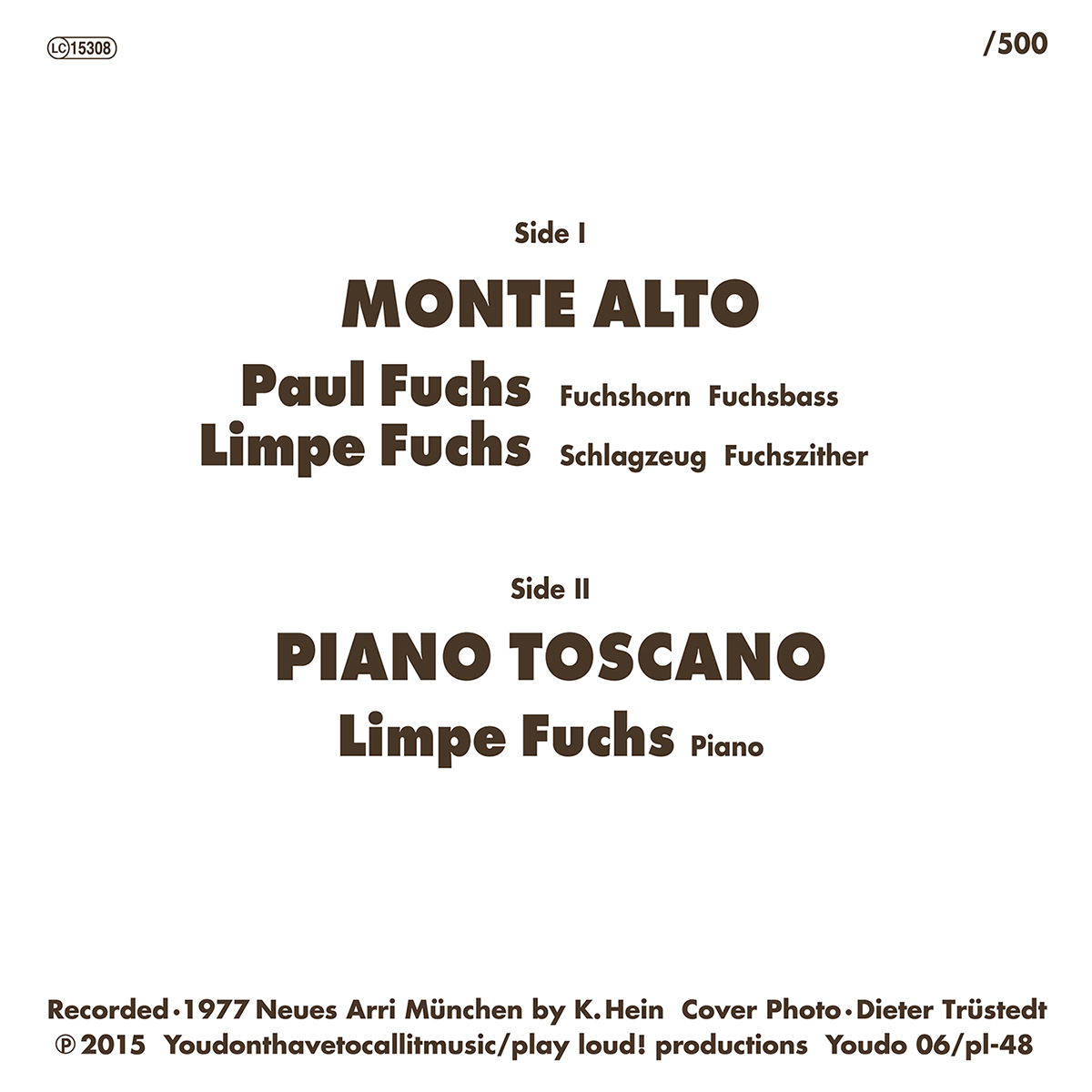 This reissue appears in advance of Limpe Fuchs and Play Loud! Productions' release of Limpe Fuchs's archival back catalog, along with some previously unreleased recordings and films.